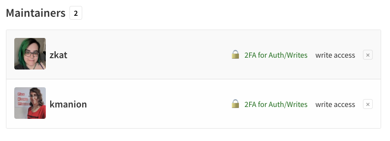 npm owner add <their-username> <package-name># new maintainer accepts invitationnpm owner rm <your-username> <package-name>